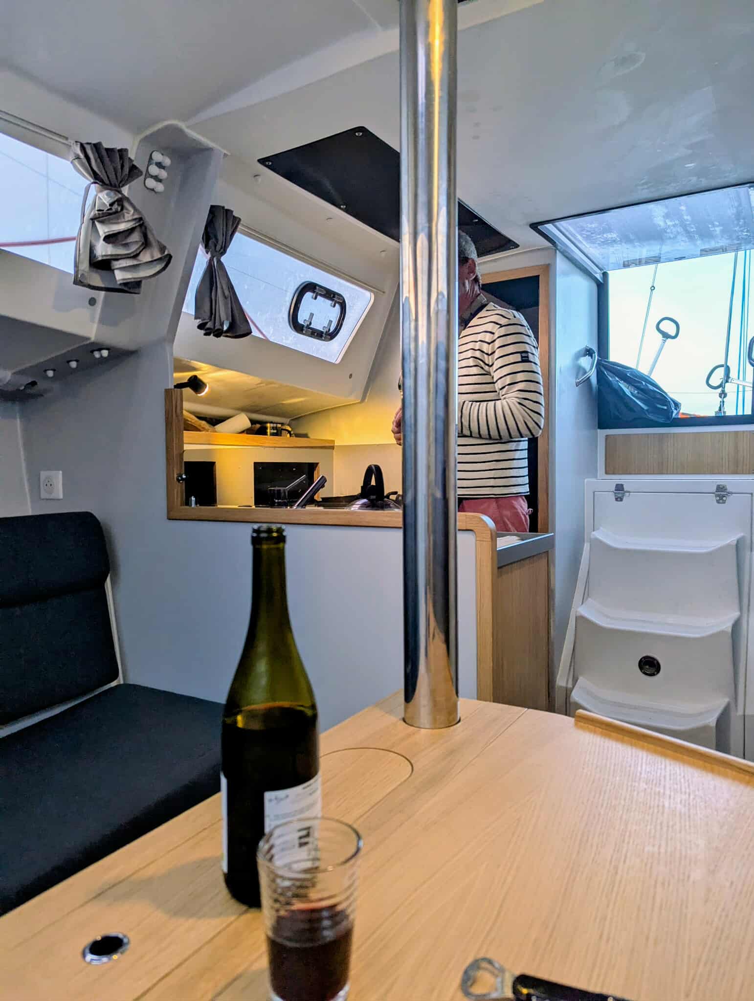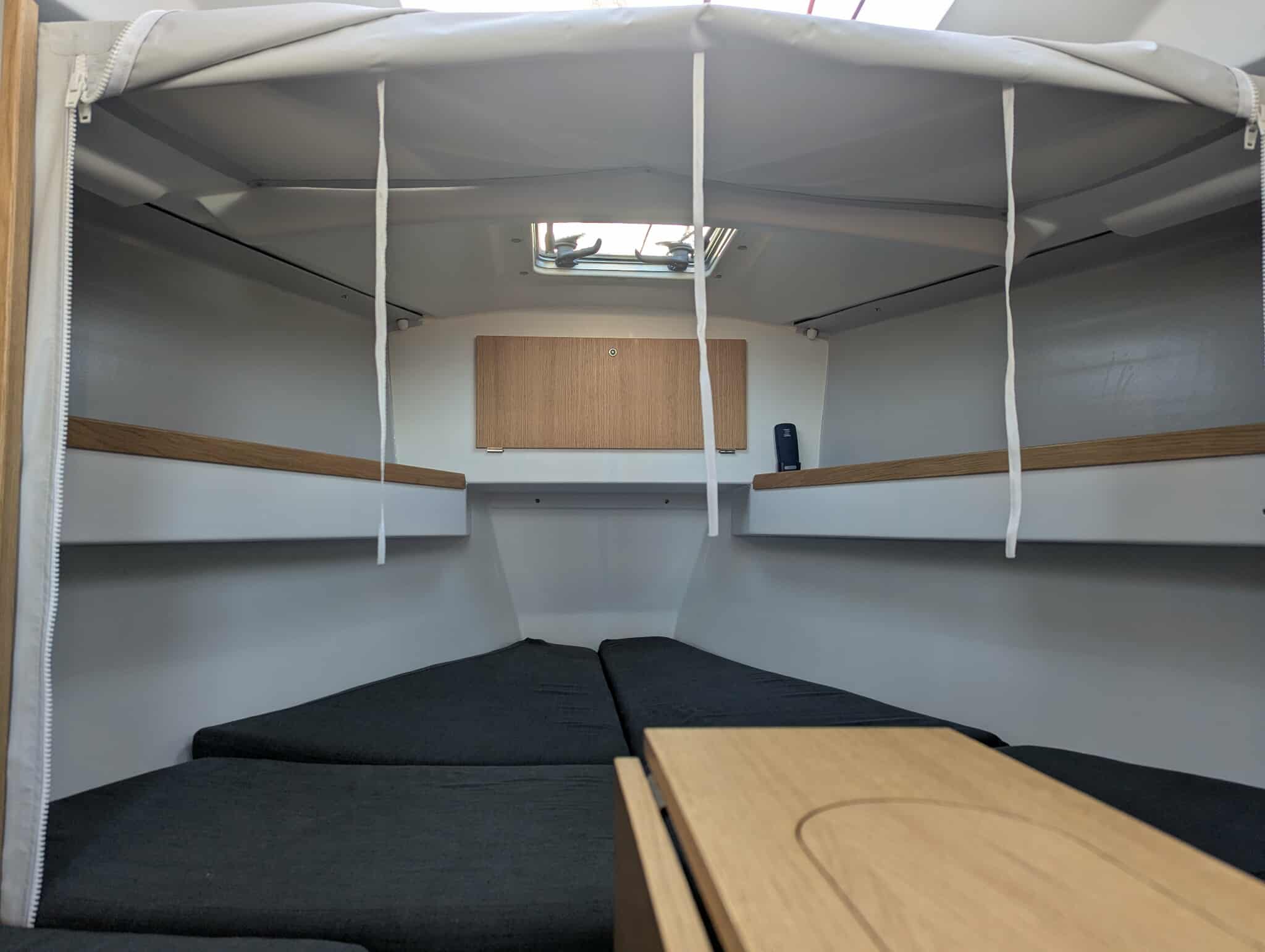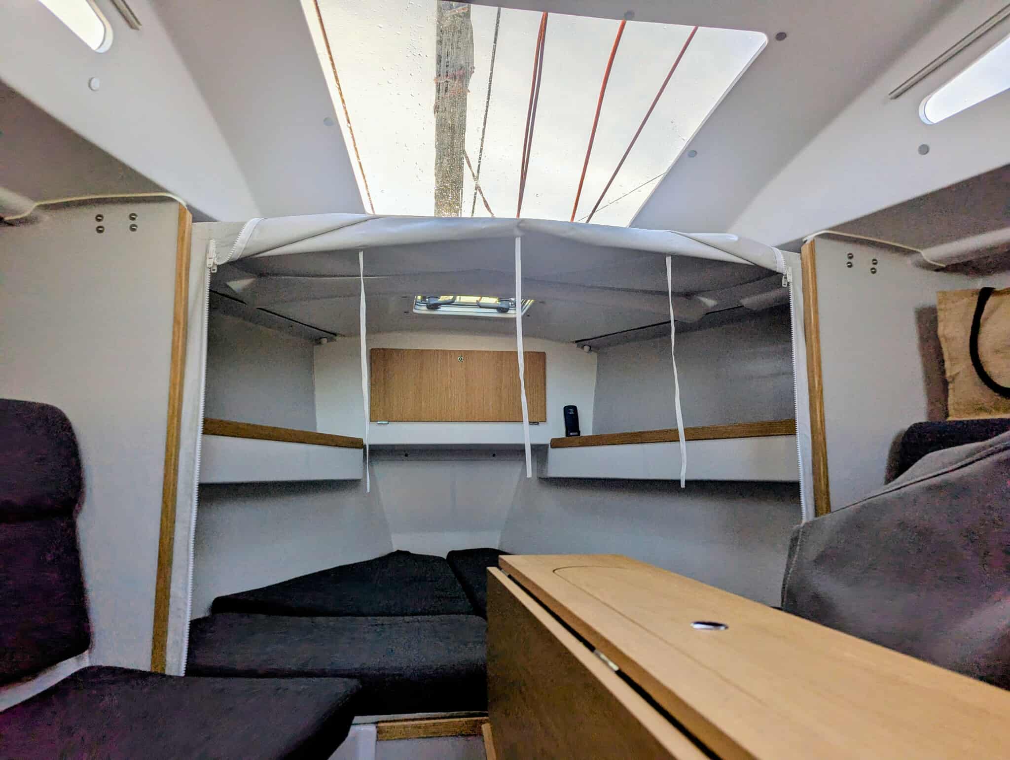 (cabine avant et cabine arrière bâbord fermées par une toile)